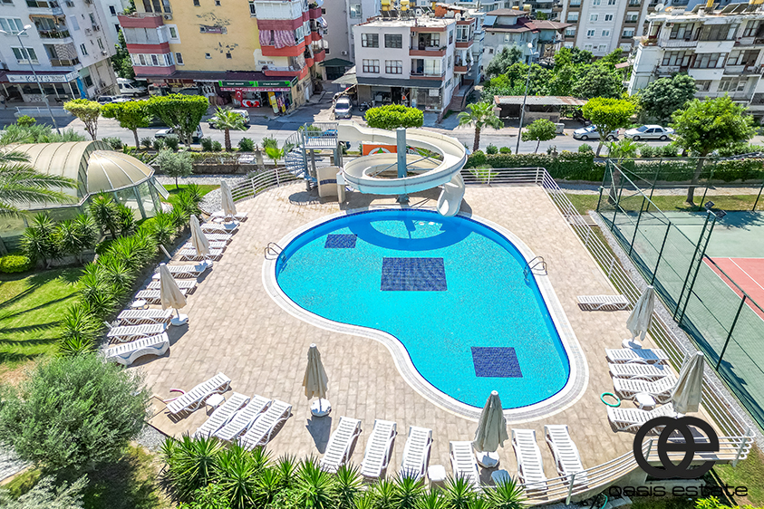 Oplev komfort, stil og en betagende udsigt i denne rummelige og smukt indrettede 1-værelses lejlighed beliggende i det eftertragtede område Cikcilli, Alanya. Lejligheden ligger på 3. etage i en velholdt 10-etagers bygning og tilbyder en spektakulær udsigt over Middelhavet, poolen og de anlagte haver, det historiske Alanya Slot og de omkringliggende Taurus-bjerge.