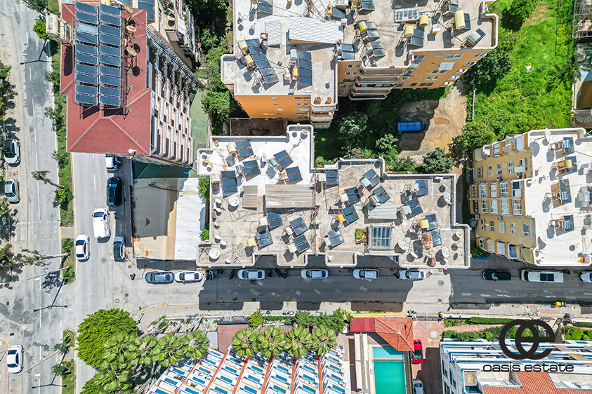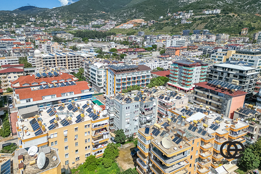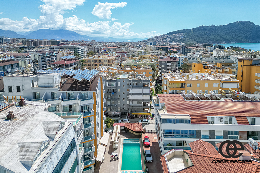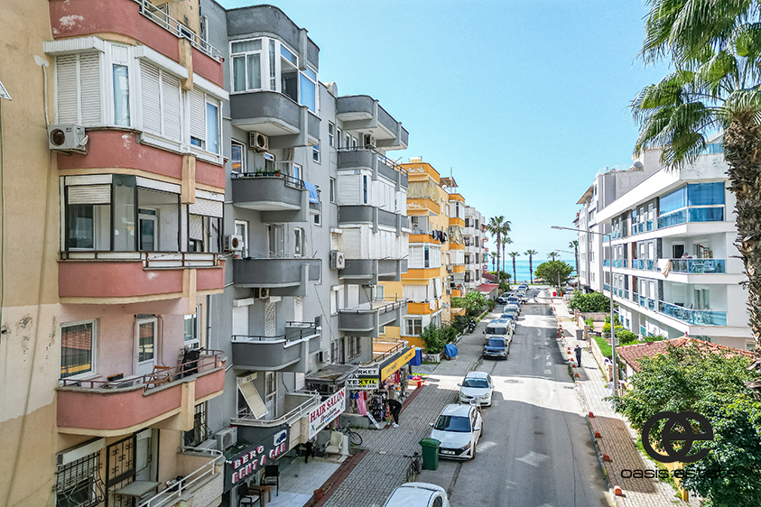 Denne lejlighed ligger i et af de mest centrale og kendte områder i Alanya, nemlig Cleopatra Beach. Havet ligger kun 150 meter væk, hvilket gør det meget nemt at nå stranden på få minutter til fods. Området er ideelt til lange gåture langs stranden, især om morgenen eller om aftenen. Fra stranden kan man ofte se både sejle forbi, parasailing og andet dagligdags liv ved kysten, der giver området sin karakter.