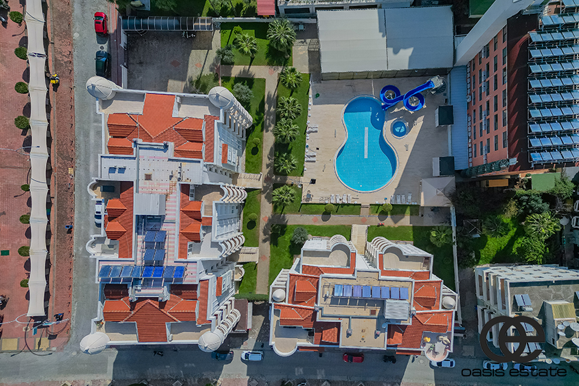 Beliggende i et eksklusivt boligkompleks, der legemliggør en ægte europæisk ånd, er denne møblerede lejlighed et dyrebart fund. Komplekset ligger kun 50 meter fra den fantastiske Middelhavskyst, hvilket gør det til et paradis for elskere af hav, sand og sol.