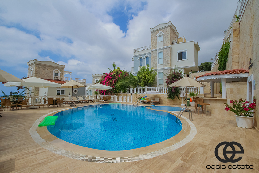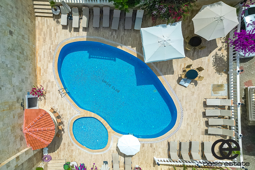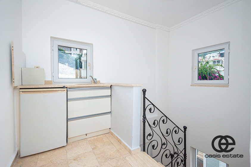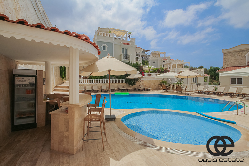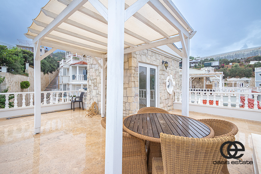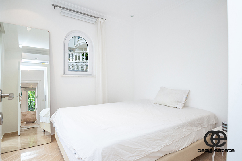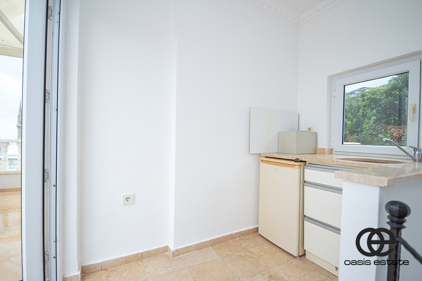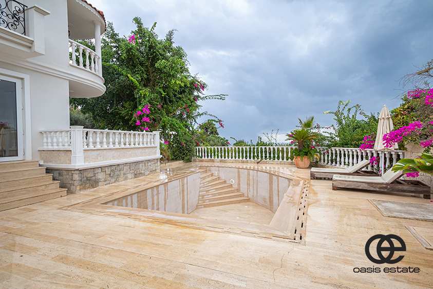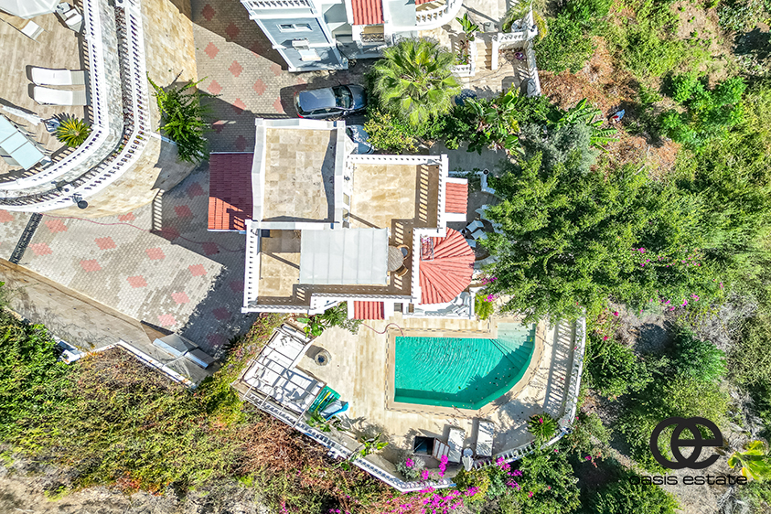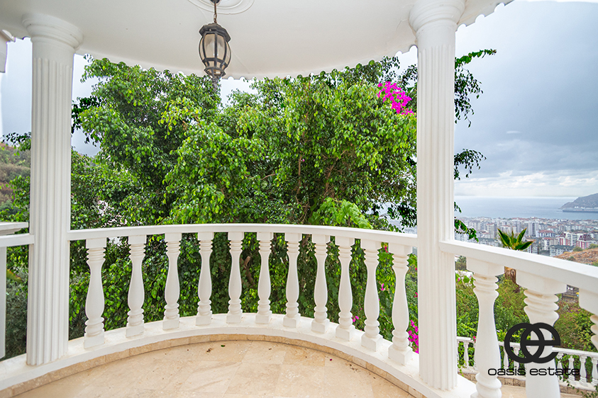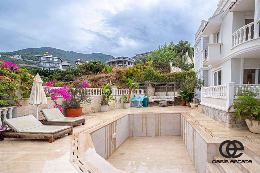 Denne villa ligger i det rolige og højtbeliggende område Cikcilli og nyder godt af en fredelig beliggenhed med panoramaudsigt over havet, slottet og byen. Ejendommen er en del af Oasis Club I-komplekset, et velholdt boligområde med 14 villaer og 3 lejlighedsblokke. Komplekset tilbyder en afslappet atmosfære i europæisk stil, ca. 10-15 minutter i bil fra havet og Alanya centrum.
