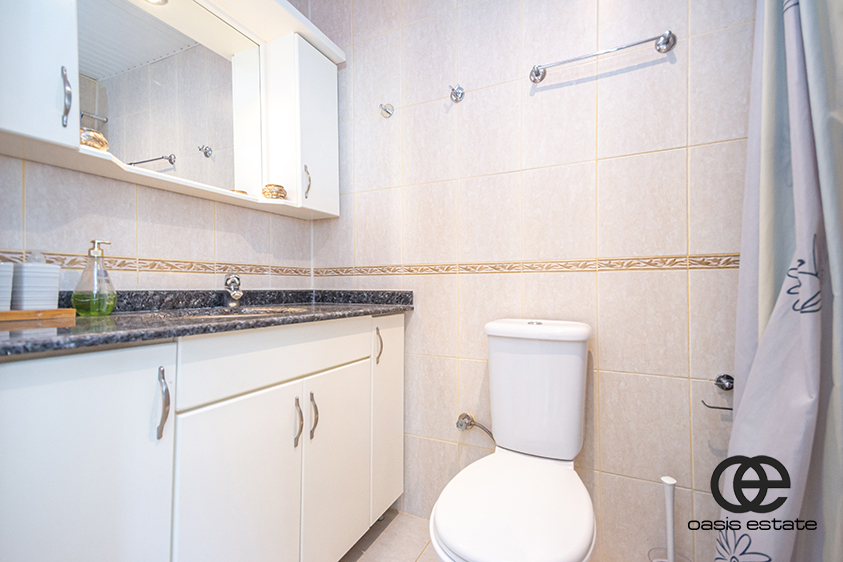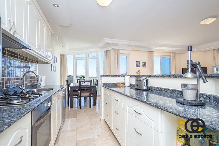 Det åbne køkken er fuldt installeret og udstyret med hvidevarer. Det har en sort granitbordplade, der tilføjer et moderne og elegant touch. Alle klimaanlæg i lejligheden er nye, hvilket sikrer komfort hele året rundt.