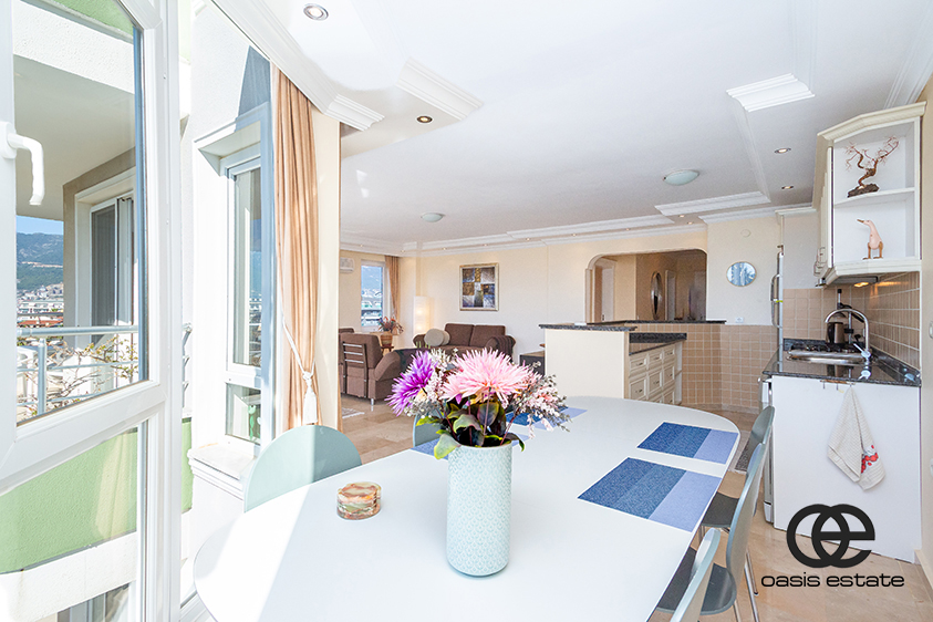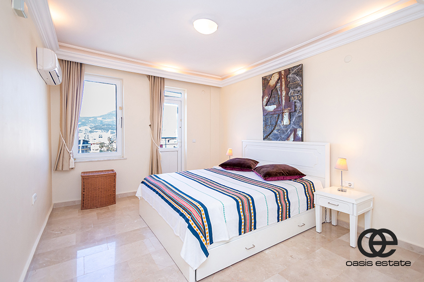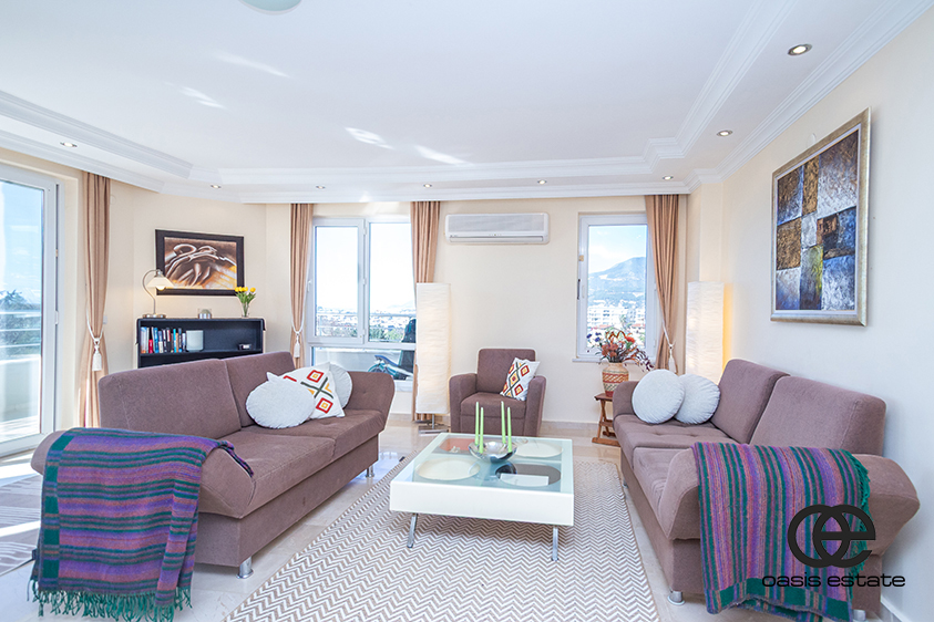 Denne lejlighed er et godt valg for købere, der søger en rummelig bolig med havudsigt i et roligt og velholdt kompleks i Oba, Alanya.